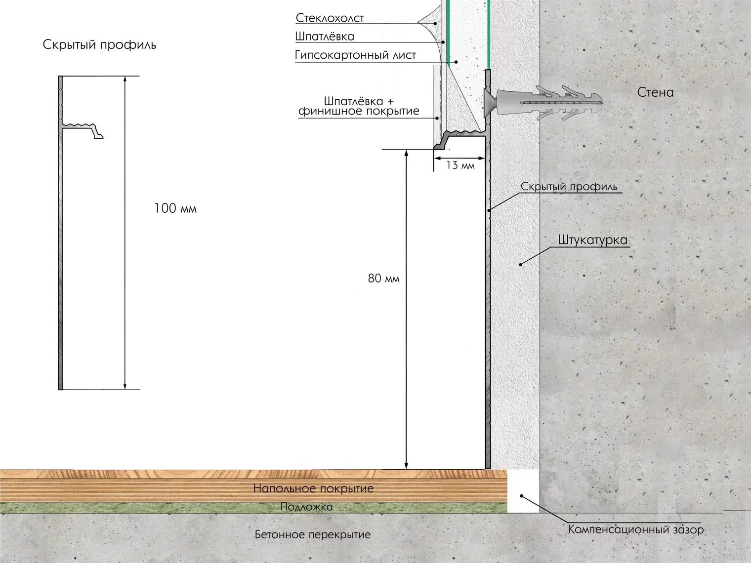 Скрытый плинтус LACONISTIQ REGULAR черный матовый (80х13х3000 мм)