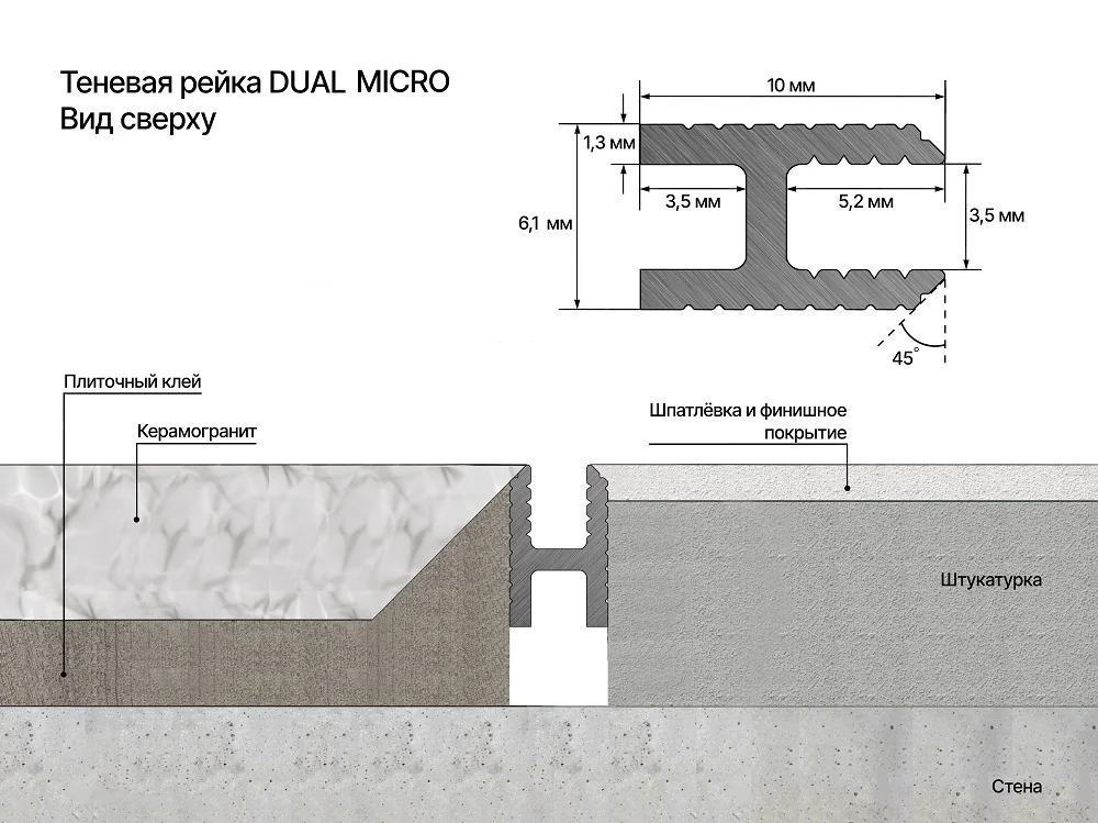 Теневая рейка LACONISTIQ DUAL mini под обои, панели и керамогранит черный анодирован (6х10х3000 мм)